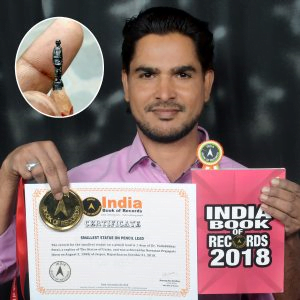 In a remarkable display of artistry and precision, Jaipur’s own miniature artist, Navratna Prajapati, has etched his name into the annals of creativity by crafting a 1.4 cm statue of Sardar Vallabhbhai Patel on the tip of a pencil. This extraordinary achievement was accomplished in just two days and is now claimed to be the smallest statue of the Iron Man of India.