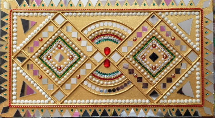 Lippan art finds its roots in the rural communities of Kutch, Gujarat, where it has been practiced for generations. Mud and Mirror work is mainly done by the women of the Rabari community. The women are so experienced in this art form that they usually don’t draw or trace a pattern before beginning work. Also, Rabari is the pastoral community of Kutch, living in the outskirts of ita villages.Traditionally, lippan art was used to adorn the interiors of Bhungas, circular mud houses with thatched roofs. The work is also a showcase of women’s art who skillfully molded the clay and embellished the walls with intricate designs.
