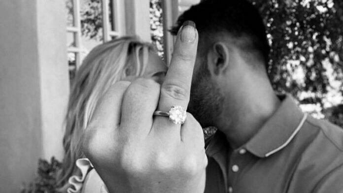 Sam also posted a photo post their announcement of them kissing and Britney was flaunting her ring finger on the camera.