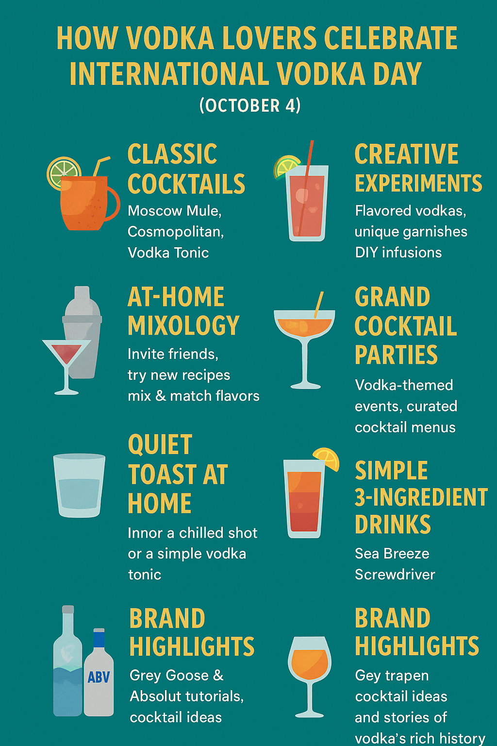 Vodka has also sparked one of mixology’s great debates: the martini. Was it meant for gin or vodka, shaken or stirred? The original martini featured gin, carefully stirred to avoid “bruising” it, but James Bond’s iconic “shaken, not stirred” vodka martini reshaped cocktail culture forever. Today, flavored vodka martinis are a trendy choice for younger drinkers, while purists still cling to the Russian classic.
