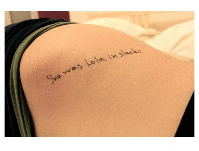 One image shows the phrase “She was Lo in the morning” written on a woman’s leg—the novel’s well-known opening line. Due to the sensitive nature of the book’s subject, the appearance of such references has sparked renewed public concern and debate.