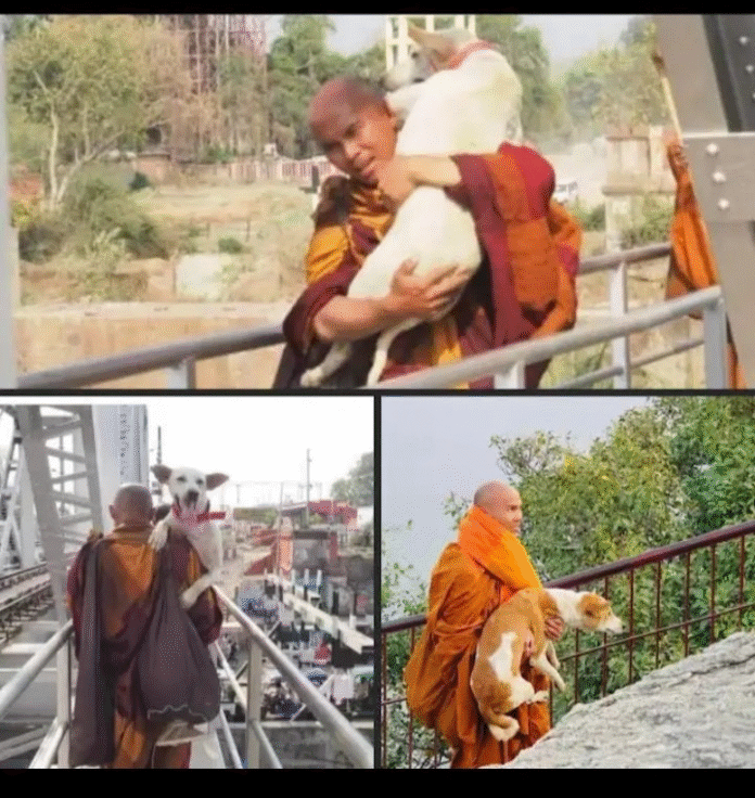 Aloka, a brown-and-white dog with a distinctive heart-shaped mark on his forehead, has emerged as the unofficial mascot of the march. Videos and photographs of the dog calmly walking with the monks have gone viral on social media, drawing admiration from people across the world.