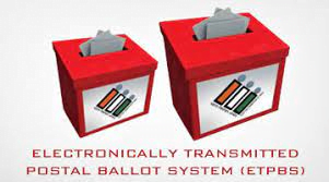 Electronically Transmitted Postal Ballot System (ETPBS) is the one-way electronic transmission of the Postal ballots to the Service Voters. The Service Voter then cast their vote and send it to the respective returning officer via Post. The complete process is secured by way of multiple checks and transmission protocol to ensure safe transmission. Upon receipt of the postal ballot at the counting centres, the returning officer validates the receipt by a series of QR codes with that of the transmitted system.