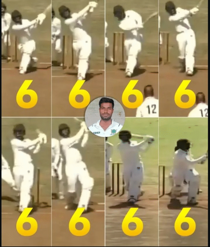Walking in at No. 8 with Meghalaya cruising at 576 for 6, Akash unleashed a storm that no one saw coming. Facing bowler Limar Dabi, he struck six consecutive sixes in a single over, followed by two more in the next rewriting what power-hitting means in red-ball cricket. By the time Meghalaya declared at 628, Akash was unbeaten on 50 off just 14 balls, his innings glittering with pure audacity and confidence.