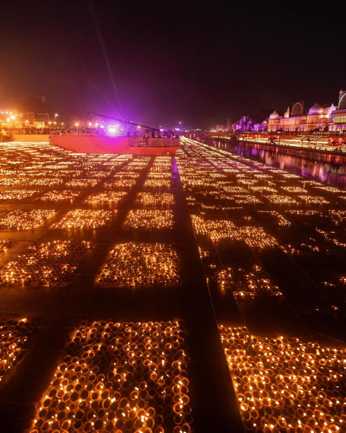 Actually, on October 20, 2025, Ayodhya’s Deepotsav festival lit 2,617,215 earthen oil lamps along the Saryu River ghats, securing a Guinness World Record and exceeding previous years’ displays.