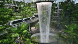 • Singapore Changi Airport is known for the world’s tallest indoor waterfall.